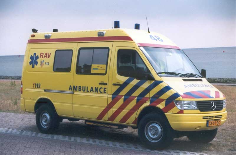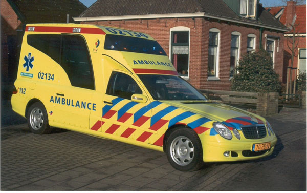Fin 2004, la première Mercedes-ambulance de type Visser 4 en service aux Pays-Bas.