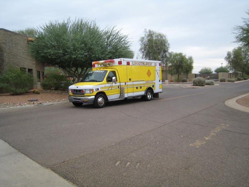 Ambulance ALS de Southwest Ambulance en prévention pour un
